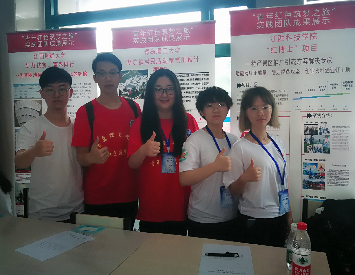 在学校创新创业学院组织和指导下,由我校建筑与城乡规划学院于红霞副教授指导,研究生王浩、李一鸣,本科生夏明怡、汪凤等组成的“靖安县罗湾乡双溪村精品民宿改造”团队、“铅山县湖坊镇居民活动室室内氛围设计”团队,奔赴江西上饶,代表山东省参加“青年红色筑梦之旅”江西全国对接活动。