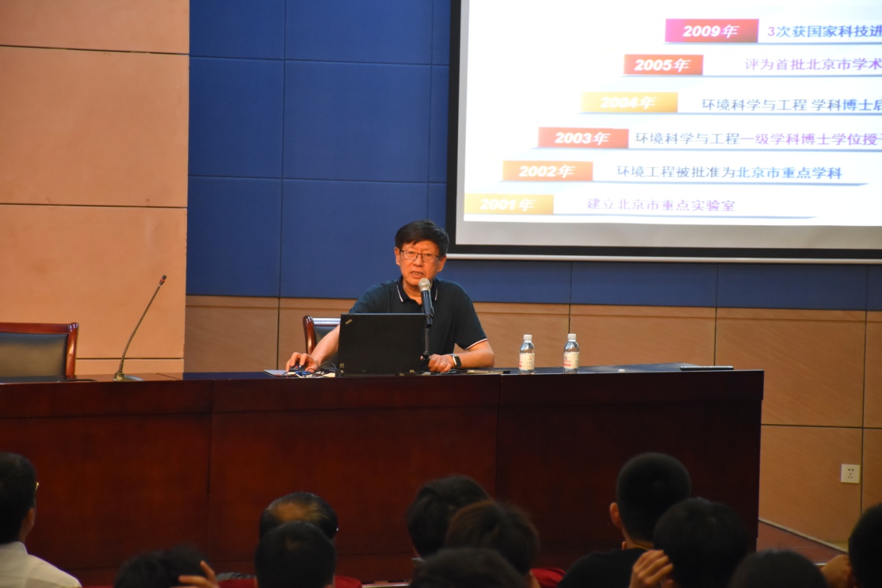 7月10日下午,中国工程院院士、北京工业大学环境学科首席教授彭永臻院士应邀来我校做学术交流,在学术报告厅作了题为“污泥双回流AOA工艺强化城市污水深度脱氮”的精彩学术报告,环境与市政工程学院师生近200人到场聆听,报告由刘长青副院长主持。