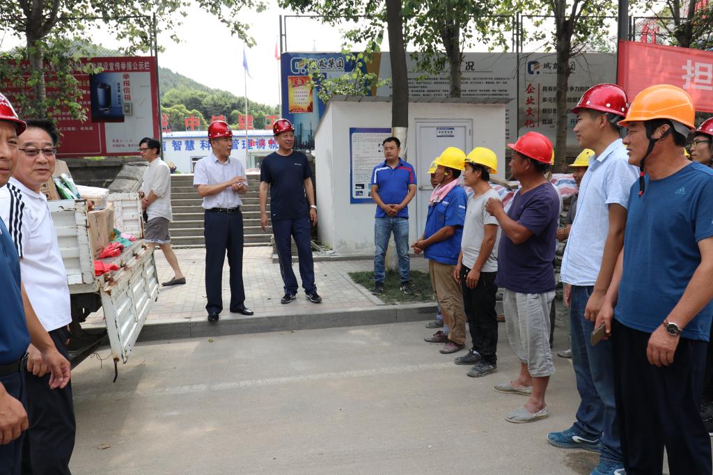 杨兴昌代表学校对现场管理与施工人员表示慰问和感谢。他指出,广大建设者积极投身新校区项目建设工作,加班加点,战高温、斗酷暑,非常辛苦,学校深受感动。同时,新校区项目建设正处于攻坚收官阶段,希望广大建设者在保障自身健康与安全的条件下,继续发扬不怕苦、不怕累的优良作风和敢打敢拼的顽强意志,加快推进项目建设进度,优质高效完成项目建设任务,确保各项目如期交付使用。