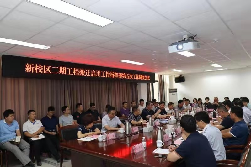 8月3日上午,学校在嘉陵江路校区现代教育中心212会议室召开新校区二期工程搬迁启用工作指挥部第五次工作调度会议,就北区学生公寓启用工作进行专题调度。校党委书记王亚军,副校长赵铁军,党委常委、副校长齐德义,党委常委、纪委书记尹东峰,党委常委、副校长沈文青,党委常委、宣传部部长陈伟,党委常委、组织部部长郭建锋,党委常委、统战部部长王维出席会议;城发投资集团有限公司董事长贾强,党委副书记、纪委书记刘元启,总裁助理付敏出席会议。校党委副书记杨兴昌主持会议。