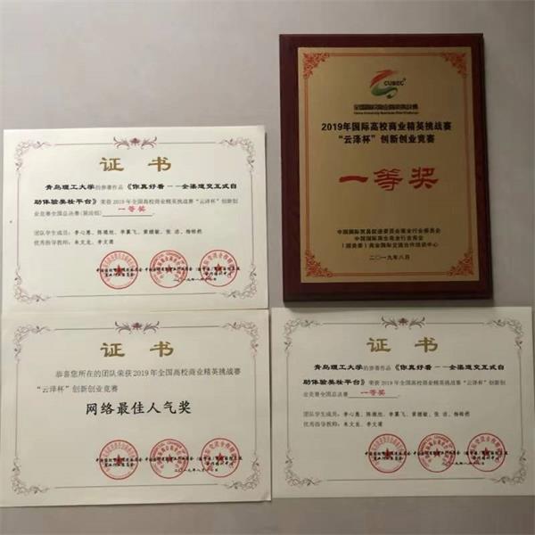 本届全国高校商业精英挑战赛“云泽杯”创新创业竞赛全国总决赛由中国贸易促进委员会商业行业委员会、中国国际商会商业行业商会和(国资委)商业国际交流合作培训中心共同主办,于2019年8月15日至17日在中国海口隆重举行。经过层层推荐选拔和组委会评审,最终共有来自全国75所高校的174支参赛团队入围此次总决赛。在我院该团队的不懈努力之下,荣获2019年全国高校商业精英挑战赛“云泽杯”创新创业竞赛全国总决赛一等奖、全国高校商业精英挑战赛“云泽杯”创新创业竞赛网络最佳人气奖,以及全国高校商业精英挑战赛“云泽杯”创新创业竞赛全国总决赛(展洽组)一等奖三个奖项。该团队积极创新、团结合作,不仅为自己赢得了奖项,更为我校争得了荣誉,推动了我校创新创业教育事业的发展。(撰稿:闫敏;审核:董兰国)