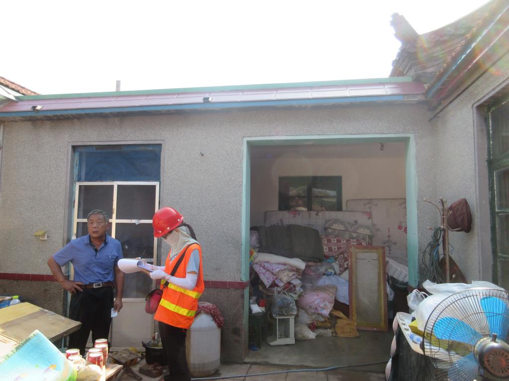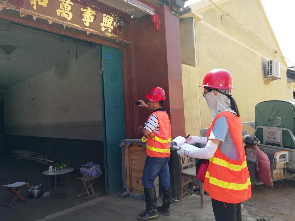 鉴定技术组随后展开工作,两人一组,深入村庄一线。所到村庄,经历过最深吃水线的近1.5米,很多村民房屋进水,同时,村民返村心情急切,对房屋质量心存担忧。在村委的带领下,鉴定技术组成员们一边组织现场拍照和记录,认真开展鉴定工作,一边做村民思想工作。鉴定技术组的成员始终连轴工作,毫无怨言,白天走村入户,开展房屋普查鉴定;晚上讨论鉴定结果,起草鉴定报告,直到到凌晨一两点钟。五天时间,鉴定技术组先后完成了营里镇河涯子村、牟家营村、李家湾村三个村庄的普查鉴定,以及齐家黑冢子村和周家庄子村的复核工作,并按照国家标准,以统一普查尺度和意见,明确村民受损房屋定级。