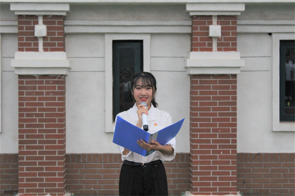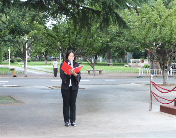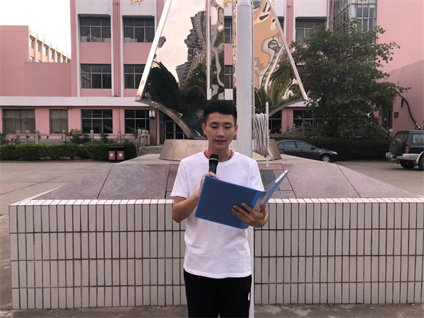 随后,来自土木工程学院、人文与外国语学院、高等职业学院的优秀团员青年代表进行国旗下的演讲。中美土木182班李梦娇同学讲到“青年学生要牢记习近平总书记的谆谆教诲,勇立时代潮头,争做时代先锋。不轻信、不盲从,是非分明、进退有度,把自己的理想和人生,同祖国的前途、民族的命运紧密联系在一起。在学习中增长知识、锤炼品格,在工作中增长才干、练就本领,以真才实学服务人民,以创新创造贡献国家!”建工171班李振广同学表示“作为新时代青年,生逢其时,重任在肩。青年人应以一生的真情,投入一辈子的顽强奋斗,永怀爱国热忱,以青春之名,行青春之事,让青春与祖国同行!”社工181班易彤同学带领同学们回顾了新中国成立70年间祖国的沧桑巨变,号召新时代中国青年,继续弘扬五四精神,不负韶华、砥砺奋进,坚决做到“两个维护”,拿出勇气、鼓足干劲,奋力创造出无愧于历史、无愧于时代的新业绩!