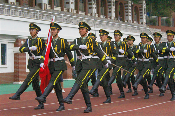 6点30分,国旗护卫队组成的升旗方阵迈着整齐划一、铿锵有力的步伐,昂首阔步护卫着国旗走上升旗台。随着“向国旗——敬礼!”口令声响起,雄壮的《义勇军进行曲》响彻大地。擎旗手奋力挥动右臂,将鲜艳的五星红旗抛向天空,迎风飘扬。全体师生挺拔肃立,行注目礼,豪迈深情地同唱国歌,迸发出爱我中华的响亮心声,立下振兴中华的宏伟志向。
