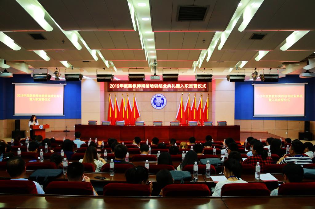 9月29日下午,学校举行2019年度新教师岗前培训结业典礼及入职宣誓仪式。校党委书记王亚军出席典礼并讲话,党委教师工作部部长、人事处处长宋玲主持典礼,党委办公室、党委组织部、教务处、学科工作办公室等有关部门负责人参加典礼。