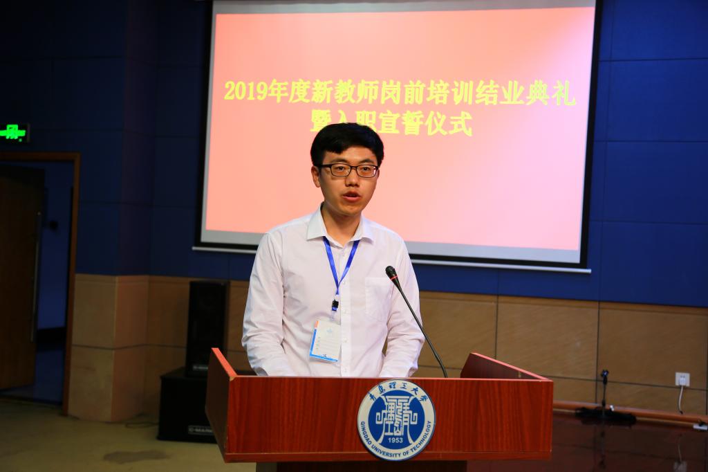 新教师代表机械与汽车工程学院马兴华博士在发言中围绕“不忘初心,牢记使命,争做四有好老师”、“蓝图已绘就,奋进正当时”、“坚持科研,开拓创新”、“树立团队精神,实现互利共赢”等四个方面畅谈了心得体会,并表示通过本次培训,从教学、科研及思想上接受了全方位的洗礼;在以后的工作中,将用心教学、用德教学、用爱教学;坚持创新性科研,用科技成果服务于民,造福于民;坚定中国特色社会主义共同理想,为国家,为民族,为青岛理工大学的灿烂明天而努力奋斗。