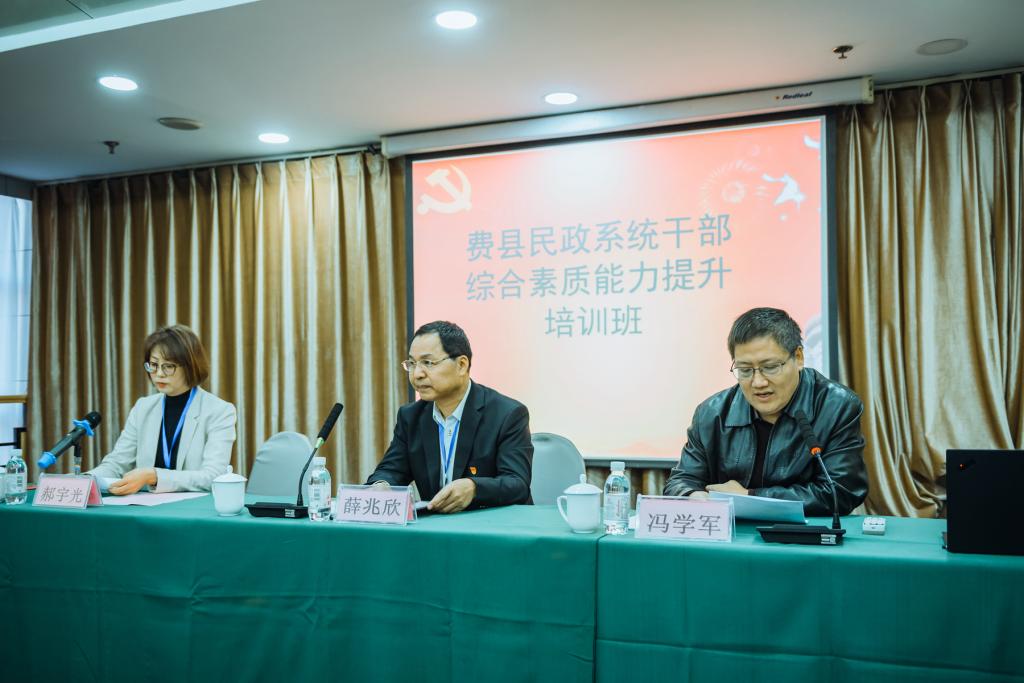 费县民政局党组成员、副局长薛兆欣,我校继续教育学院副院长冯学军出席开班仪式。仪式由继续教育学院培训中心主任郝宇光主持。来自费县民政局机关、乡镇民政办、社会组织管理办公室等47名学员参加此次培训。