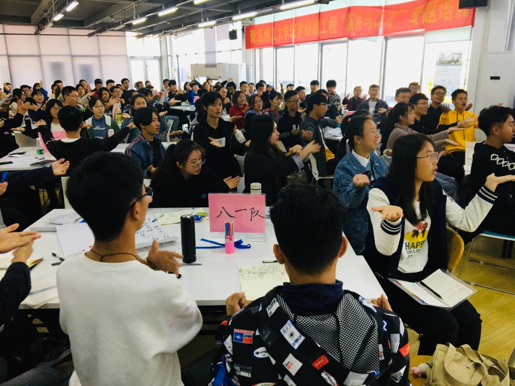为了进一步推进我校资助育人工作,帮助新生尽快适应大学生活,提升综合素质和能力,我校2019级“筑梦铸魂工程”综合能力提升专题培训班于10月26日拉开帷幕,在市北校区和嘉陵江路校区同时举办“演讲与口才”专题培训。本期培训有240名2019级家庭经济困难学生参加,由中国国学委员会委员、格物书院创始人张哲伦、国家人力资源和社会保障部认证的高级培训师陈海国分别授课。