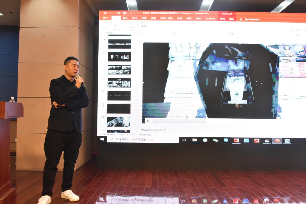 第一场建筑设计分享由宋晨先生主讲,分享题目为《数字化与建筑空间的新生》。宋晨先生已从事建筑行业十几年,在现代建筑领域造诣颇深,对新媒体与建筑空间有着独到的见解。分享中,宋晨用图片和视频介绍了BVLGARI宝石梦展览、BLUFISH镜面餐厅、DOLCE GUSTO体验店等多个SODA团队设计改造案例,从“用空间连接真实与虚拟世界”、“将新媒体与空间融合”、探索人与空间体验的全新可能”等方面对现代建筑的创新进行深入解读。宋晨还展示了团队设计时的草图及创意概念图片,讲解了在现代建筑方面的新突破,可谓是一场别开生面的经验分享。宋晨先生鼓励同学们追求建筑与现代新媒体的结合,积极探索,激发新思路。分享结束后,宋晨先生还针对现场提出的问题进行了详细的解答,使同学们深入理解现代建筑的新理念。