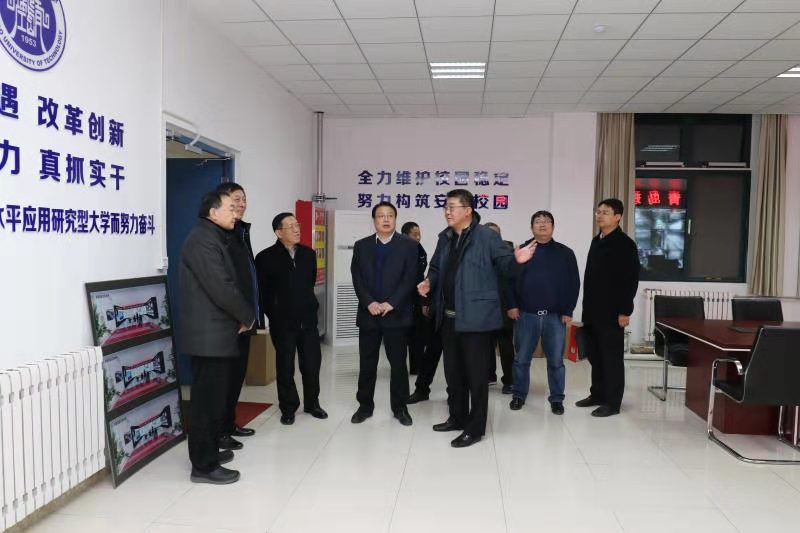 12月4日下午,山东省教育厅二级巡视员荆戈带领财务处(学生资助管理中心)处长吴建华、科长李进来校调研指导工作。校党委书记王亚军,党委副书记、校长谭秀森,党委副书记杨兴昌,党委常委、副校长齐德义、王伟陪同调研。