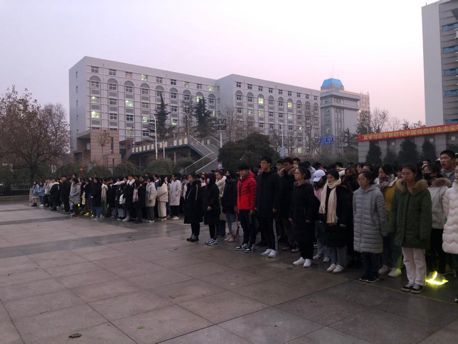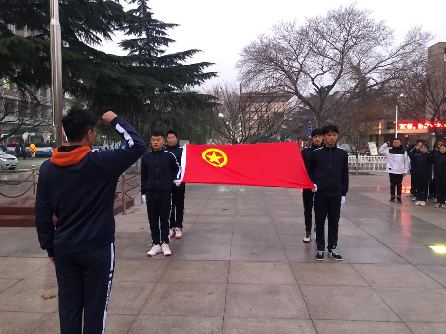 本次升旗仪式以纪念“一二·九”为主题。6:30分国旗护卫队方阵迈着整齐划一、铿锵有力的步伐,昂首阔步护卫着国旗走上升旗台。他们坚定的站在升旗台上,用全身的力量将五星红旗抛向天空。鲜艳的五星红旗在第一缕晨曦的映照下,在全体师生的注目礼中冉冉升起,神圣、庄严的氛围感染着在场的每一个人,一颗颗赤诚的心守望着那面红色旗帜,坚定而又执着,心中饱含着对祖国无尽的爱。