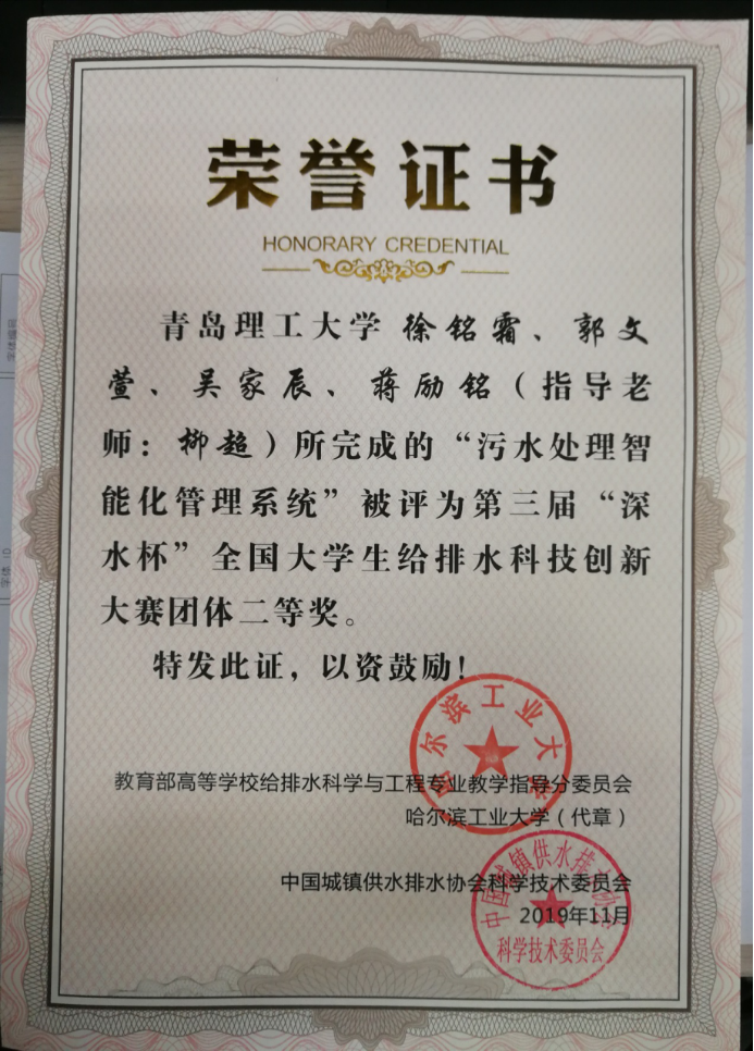 近日,从第三届“深水杯”全国大学生给排水科技创新大赛传来喜讯,我校环境与市政工程学院选派的团队获得了团体二等奖的好成绩,把青岛理工大学的名字写入赛事花名册。