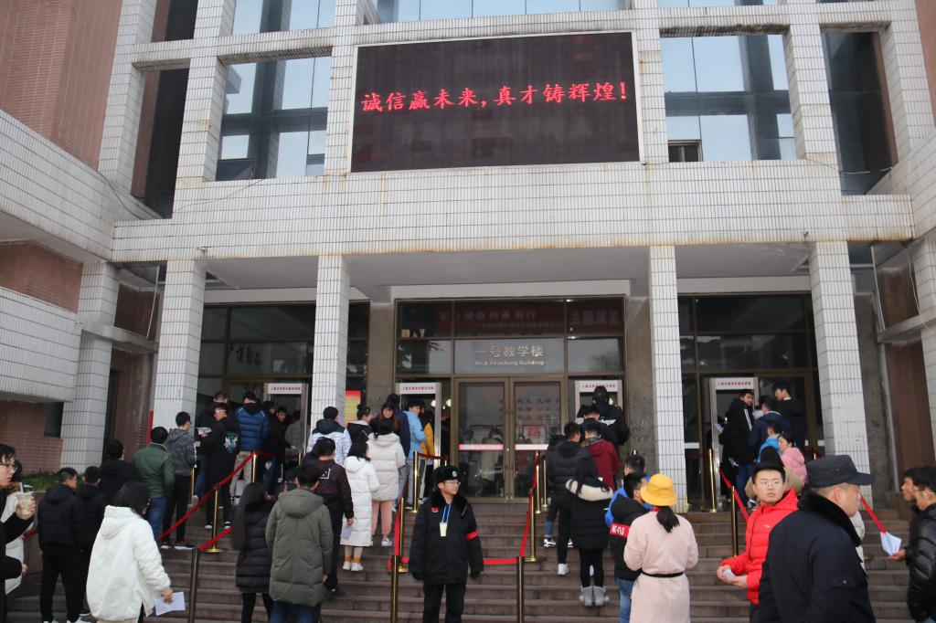 今年共有1705名考生在青岛理工大学参加考试,考生数比去年增幅33.1%。在一号教学楼和建筑馆共集中安排57个考场,参与承担监考、考务、保障等工作的人员200余人。根据山东省教育招生考试院统一部署要求,考点现场,考生入场时采用人脸识别自动身份验证系统,并增加了人工“二次安检”,严禁携带手机等通信工具入场。为妥善保管考生个人物品,工作人员在存包处还为考生提供了存包牌。