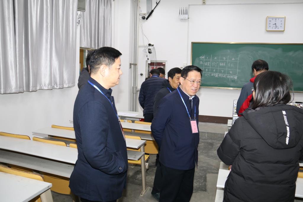 谭秀森校长一行实地视察了一号教学楼与建筑馆的实时监控室、考场现场、考务工作室等场所现场环境。每到一处,谭秀森向工作人员仔细询问具体工作要求,详细了解各个考点的考场设置、考场屏蔽、纪律把关、场外安保、遇到突发情况该如何应急处置等,并深入到视频监考室,通过网上巡视系统对考场秩序进行巡视,认真查看各考场考务工作。