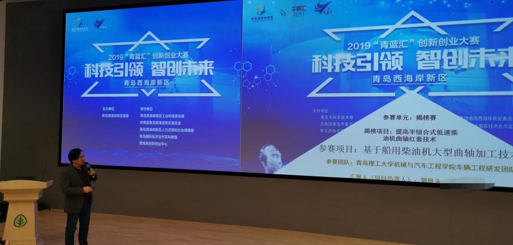 12月24日,青岛西海岸新区2019年“青蓝汇”创新创业大赛在青岛国际经济合作区(中德生态园)被动房技术体验中心圆满收官。我校机械与汽车工程学院车辆工程研发团队参赛项目《基于船用柴油机大型曲轴加工技术》荣获一等奖。本次进入揭榜赛决赛的两支队伍分别是我校机械与汽车工程学院团队和青岛科技大学机电工程学院团队。
