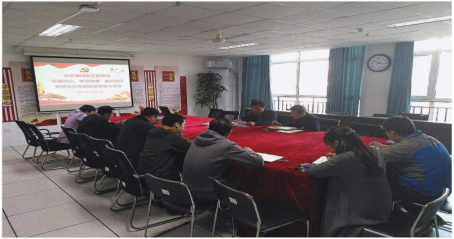11月5日,党总支召开对照党章党规找差距专题会议,班子成员在学习党章、《关于新形势下党内政治生活的若干准则》、《中国共产党纪律处分条例》基础上,结合工作调研,对照“十八个是否”,查找了自身在理论水平、服务师生、创新能力、担当作为等方面存在的不足和差距,深刻剖析根源,制定了整改措施,并相互间提出了批评意见。各党支部所有党员也相继完成了对照党章党规找差距,检视自身差距,并提出了下一步努力方向。