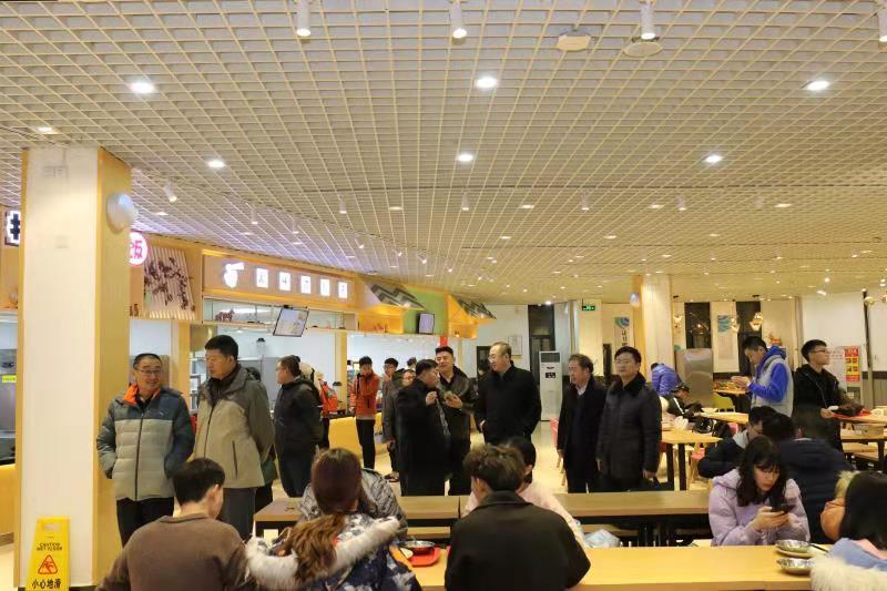 与会人员一行实地考察学校餐厅