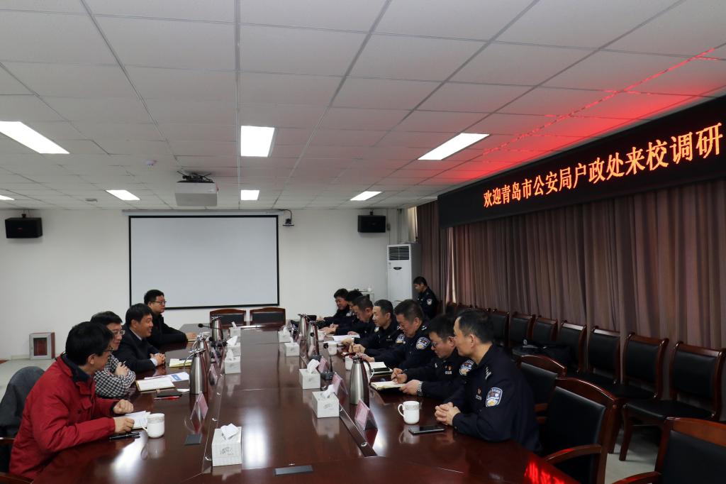1月9日上午,青岛市公安局户政处处长曾勇,开发区分局副局长陈玉奎,薛家岛派出所所长张鹏路等一行到我校嘉陵江路校区进行走访调研。