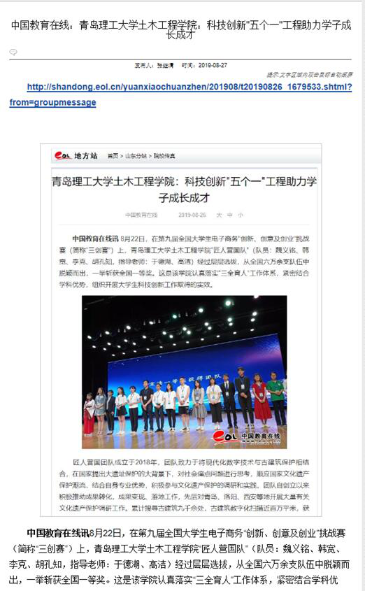 作为学院大学生“科技创新五个一工程”的重要组成部分,旨在让学生在校期间至少参与一项科技创新活动为目的,增强了学院学生的科技创新意识,提高了创新实践能力,为参加校外比赛选拔了优秀队员,储备了人才。一年来,学院学子取得了优异的成绩,获国家级奖励31项、省级奖励43项、市级奖励6项,30人次成功申请16项实用新型专利,发表学术论文29篇,科技创新“五个一”工程助力学子成长成才被中国教育在线等多家媒体报道。