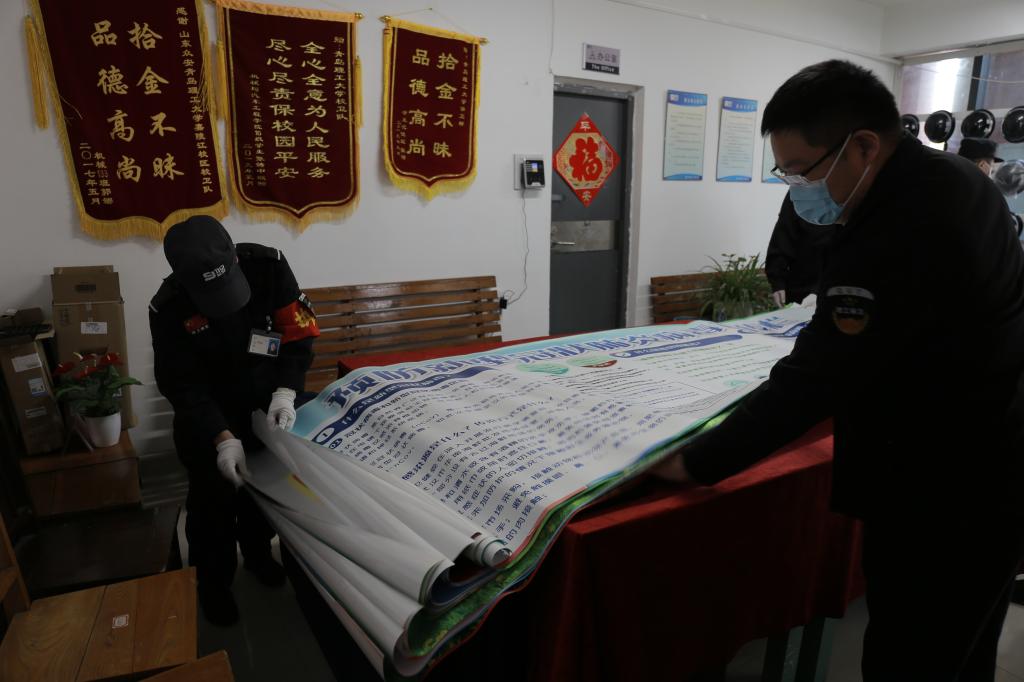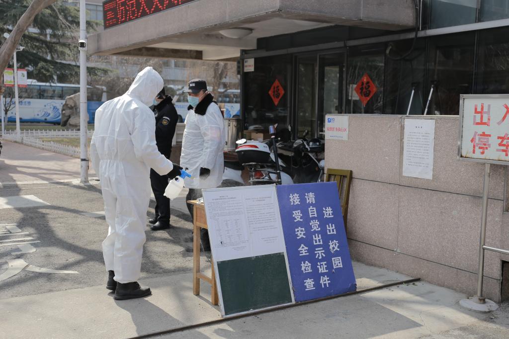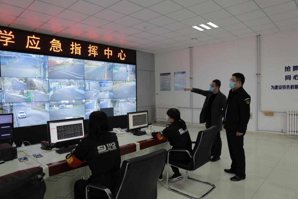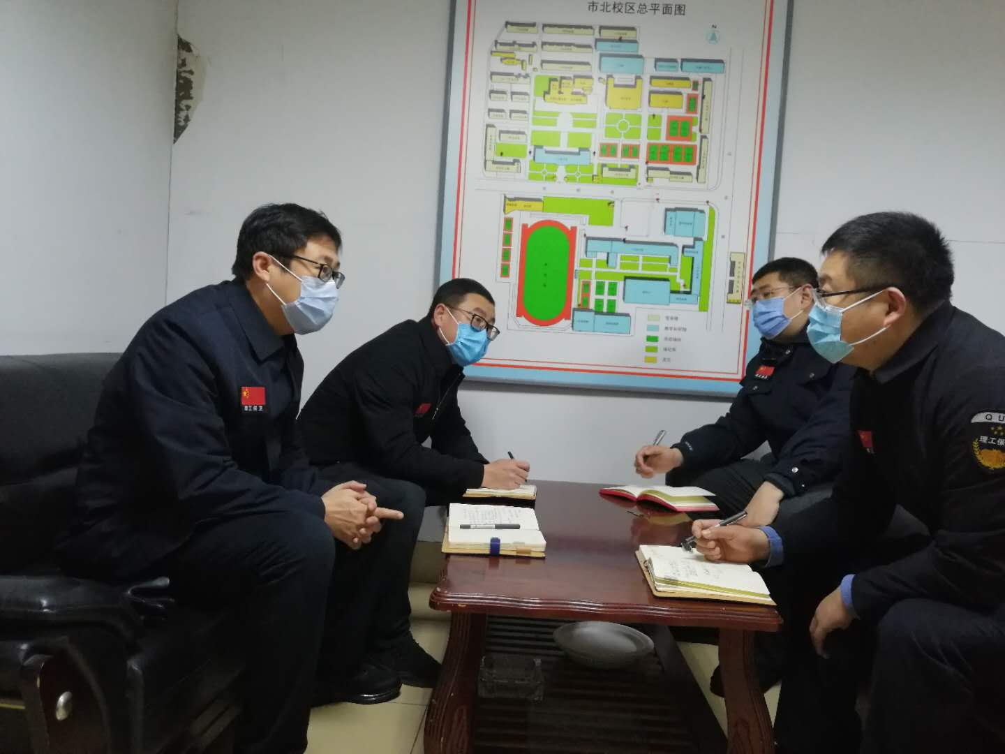 接到学校疫情通报后,1月26日,保卫处召开紧急会议,启动特殊时期工作机制,研究应对方案,明确了工作职责,强调“我们虽然不能像白衣天使去治病救人,但是我们力争让疫情停止在门岗之外”,处领导班子需全员上岗、进入备战状态,要以分秒必争的行动和雷霆万钧的手段,做好校门等重要场合封闭工作,细化进校登记、查验手续,采购配备口罩、酒精等执勤防护物资,确保校门安全,严防疫情传入。