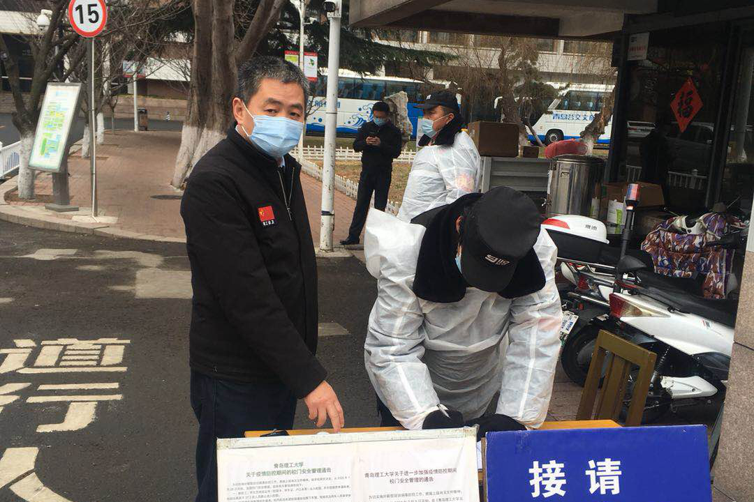 他是主动担当、勇承重载的校卫队队长。接到命令后,刁永昶同志第一时间向校卫队传达学校疫情防控工作部署,打印、张贴、发放防控疫情宣传材料,对所有出入校园的人员和车辆进行严格登记,并引导和劝说进入人员测体温,全力以赴把好“第一道关卡”。从大年初二开始,刁永昶一直坚守岗位,他说:“虽然不能在节日里陪伴在亲人左右,照顾到老人和孩子,但是为了学校的安全稳定,一切的付出都是值得的”。