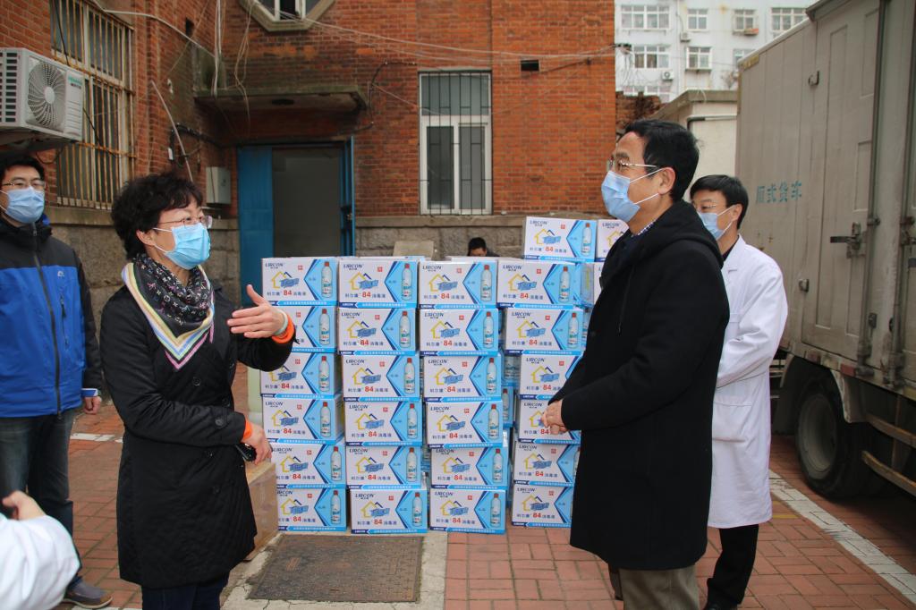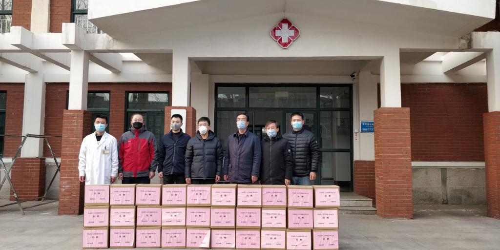 2月6日上午,青岛校友会就将首批防控物资----20件防护服和5500瓶84消毒液送到学校校医院;