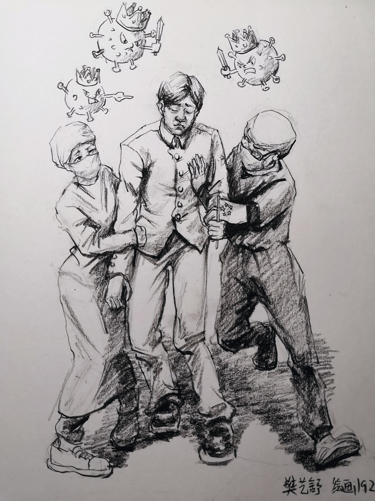 艺术与设计学院孙建华 《同心协力,打赢防疫攻坚战》