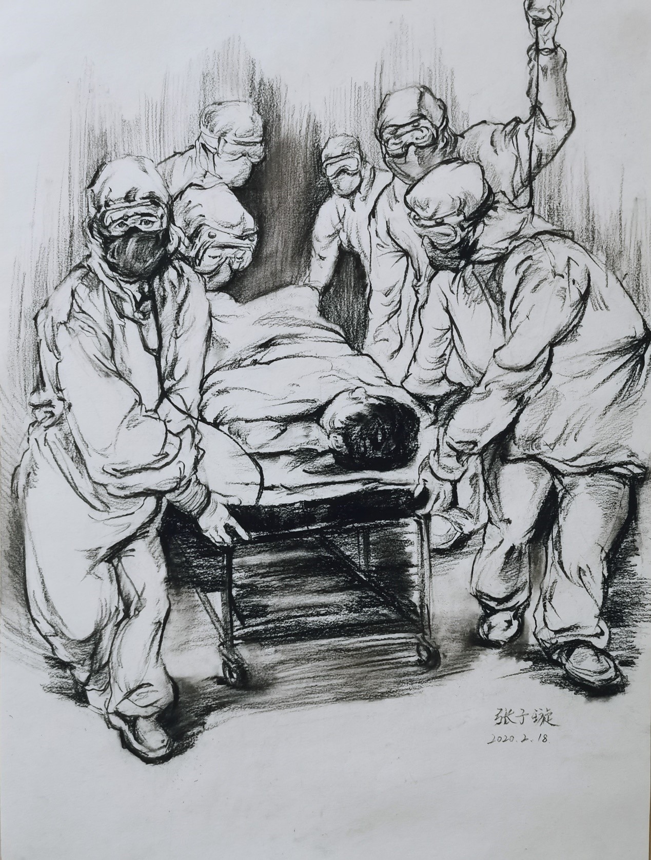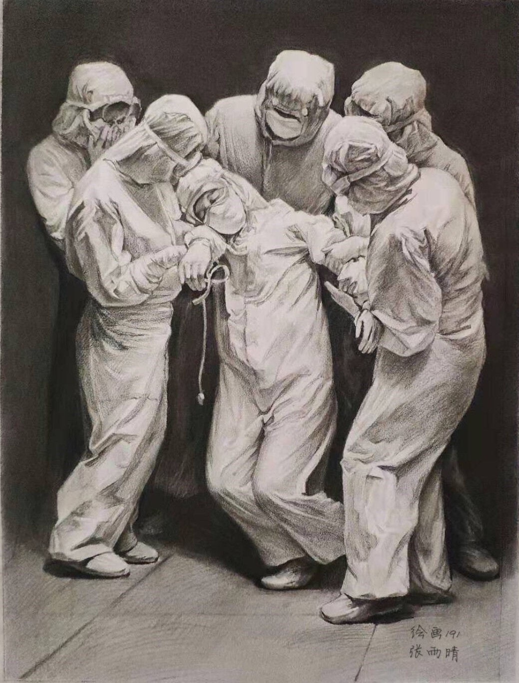 艺术与设计学院钱治科 《致敬白衣天使》系列作品