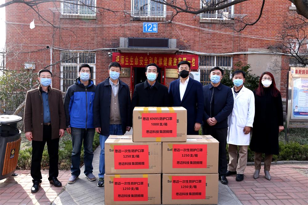 在全校上下众志成城抗击新冠肺炎疫情的关键时期,3月12日下午,思迈科技集团思迈科技投资控股有限公司总经理李振、山东思迈智创科技有限公司市场经理王丹一行在市北校区向学校捐赠KN95防护口罩1000支、一次性防护口罩5000支,用于学校新冠肺炎防控工作。校党委常委、副校长、防控工作领导小组办公室主任齐德义代表学校接受捐赠。