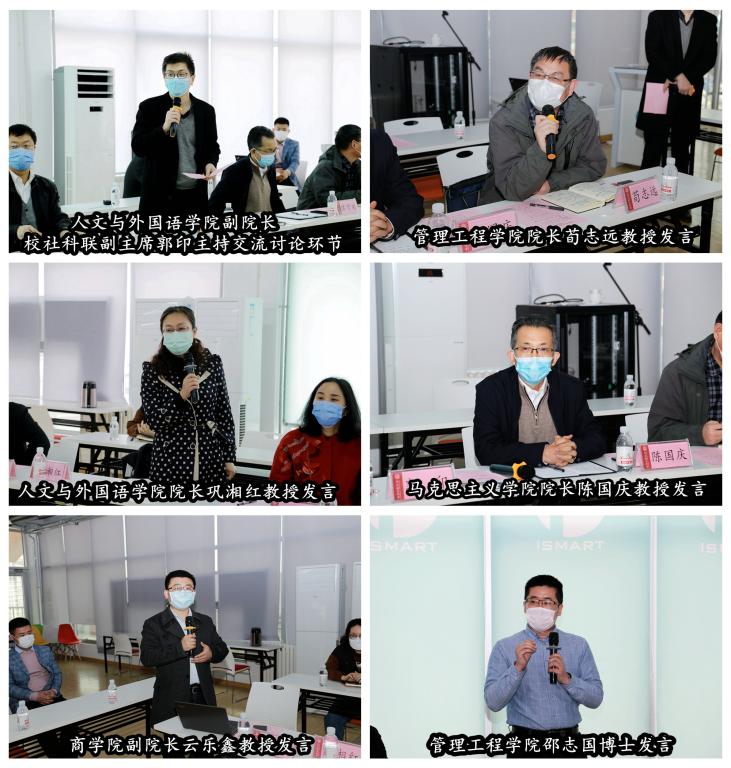 在讨论交流环节,与会人员踊跃发言。相关学院、学术组领导陈国庆教授、巩湘红教授、荀志远教授、云乐鑫教授和青年教师邵志国博士等分别从不同的学科角度,结合各自科研实际和疫情形势,就下一步的社会治理研究进行了深入的探讨交流。