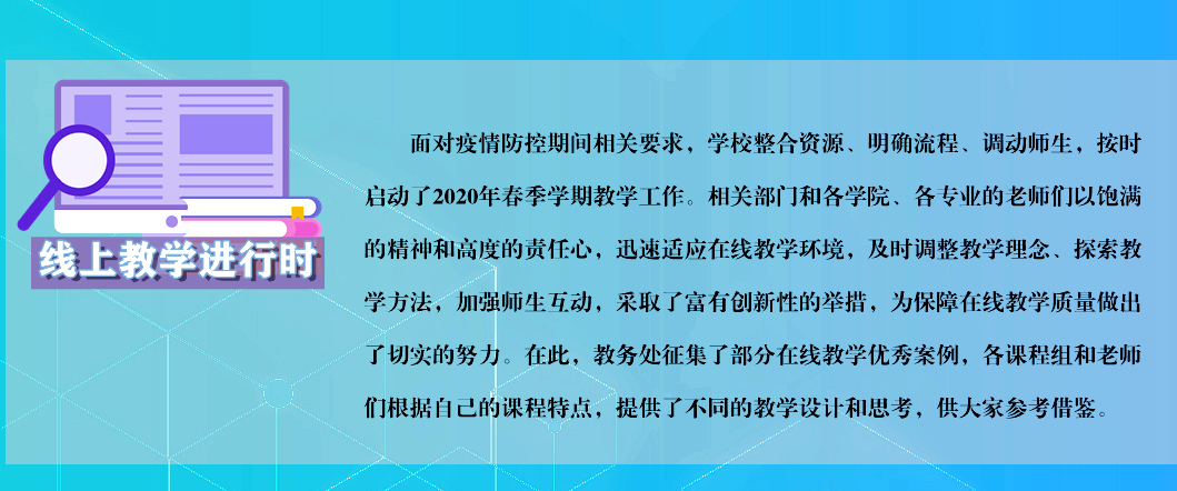 总之,教师的倾情投入,学生的积极参与,师生之间频繁互动,共同克服“网络拥堵”,灵活运用多种教学平台和教学手段,以分散教学、分段学习、任务驱动、项目引导等创新型教学形式,努力真正实现“停课不停学,在线也高效”的教学目标。(撰稿:孙好芬,审核:田艳兵、李金成)