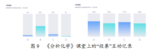 再比如,对于课堂中的一个小小例题,老师可以按部就班的讲解,可是大部分“心不在焉”的学生根本听不进心里去,或许由于年轻人的心理世界大都是激情澎湃、魅力四射的,老师的“平铺直叙”提不起他的精神头来,学生们希望老师能够刺激到他学习的“味蕾”,让他有可吃“菜”的“欲望”。课堂“抢答”环节不失为一种有效手段,年轻人有种“抢红包”般的刺激冲动,给他一个机会,他就会去积极表现,试想一下,他还能听课时睡觉,或者觉得无聊么?还有“投票”功能,可以让所有同学互不干扰的积极参与,老师还可以一目了然看到学生的学习效果以及正确率情况,这也是调动学生积极性的法宝之一,高校课堂里的这种“鲶鱼效应”,可以大大提高课堂教学效果。