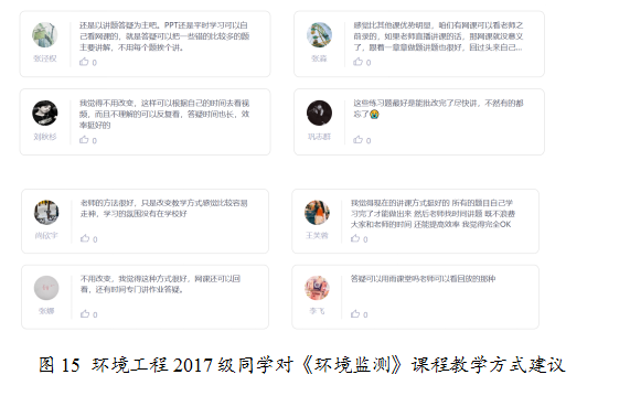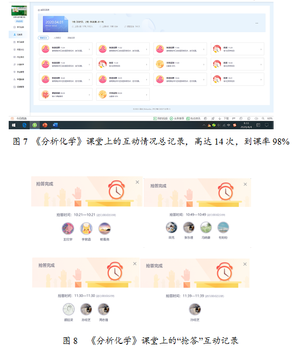 “漫长的假期”并没有使高校老师们停下授课的脚步:根据疫情防控工作需要,针对国家开放的22个在线课程平台2.4万余门在线课程进行有效检索,进行疫情背景下的混合式教学准备与设计;在多次倾听“雨课堂”、“智慧树”、“超星”等教学平台的在线教学培训后,从理论和实践方面努力提高自己的混合式教学重构与设计素养,综合考虑各个平台的优劣,严防课堂“翻车”、“堵车”现象,选择出适宜自己并可留有教学记录的最佳教学平台:首选山东省高校课程联盟的在线课程中的《分析化学》、《环境监测》两门课程的微课视频,适合于学生们在线预习并标记出疑问点;其次是利用智慧树平台的翻转课,可以发布学习任务、学习资料(微课视频、PPT、PDF均可)、加强学生的作业训练、开展直播课堂答疑、签到、抢答、投票、头脑风暴等;还有“长江雨课堂”,可进行习题课答疑与检测,课堂结束后可以回看、回听,有利于学生反复学习;QQ群,也是必不可少的交流工具,可以实现任课教师和学生之间“无缝衔接”,及时收集学生疑问并进行适时答疑,不受课堂时间限制,并可以长期保存学习资料与文件。
