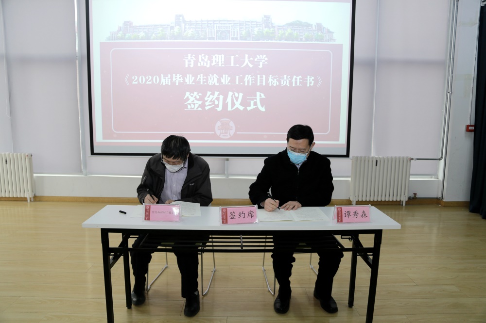 校长谭秀森代表学校与学院代表签订就业工作目标责任书