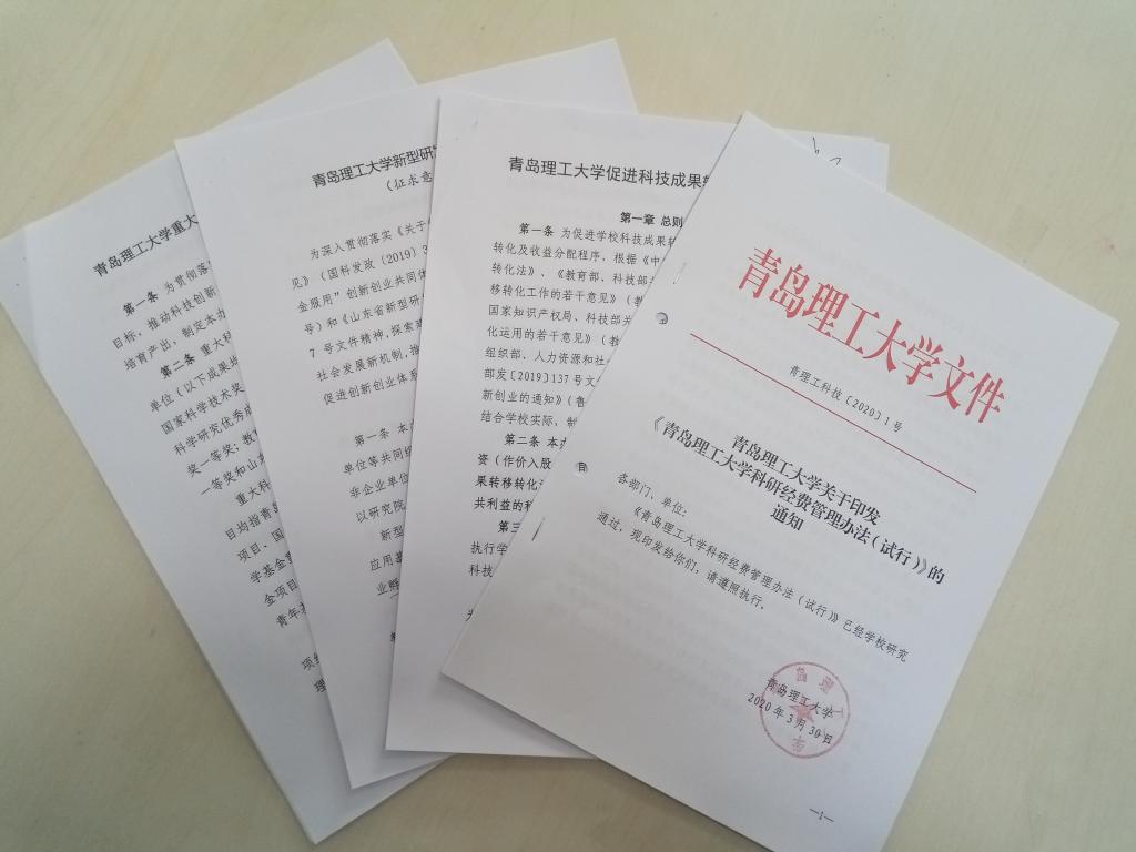 经过3个月的调研、研讨和修改,2020年3月,《青岛理工大学科研经费管理办法》正式出台,结合“放管服”要求对经费支出等管理规定做出合理修改,为科研人员“松绑解困”。《青岛理工大学科技成果转化管理办法》《青岛理工大学新型研发机构管理办法》《青岛理工大学重大科研成果培育办法》等系列科研机制改革文件也已进入广泛征集意见阶段。