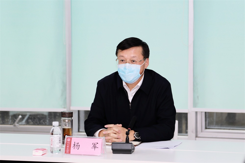 杨军指出,要认真学习贯彻习近平总书记关于统筹推进新冠肺炎疫情防控和经济社会发展工作的重要讲话精神,紧密结合高校实际,增强信心、化危为机,将中央、省委、市委的部署要求落实到位,在奋力夺取疫情防控和经济社会发展双胜利中贡献高校智慧和力量。