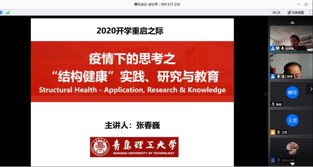 5月13日下午,在将要重启开学之际,土木工程学院举办“疫情下的思考”线上专题讲座第一讲:“结构健康”实践、研究与教育,讲座由学校结构振动控制创新团队带头人张春巍教授主讲,吸引包括我校教师、研究生、本科生在内的近300人在线参加,讲座由土木工程学院党总支书记曲成平主持。