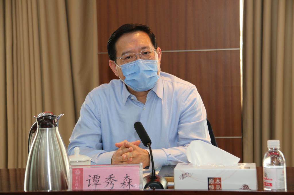 谭秀森从高端平台建设的背景意义、理念与路径、实施要求三个方面,就高端平台建设工作部署做总结讲话。