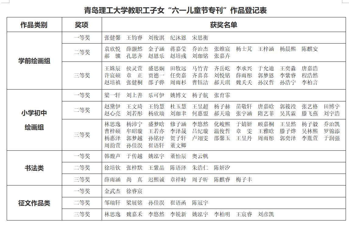 比赛分为绘画类、书法类、征文类三大项,共收到学前、小学、初中三个年龄段教职工子女的作品149幅,评出一等奖18个、二等奖49个,其余为三等奖。
