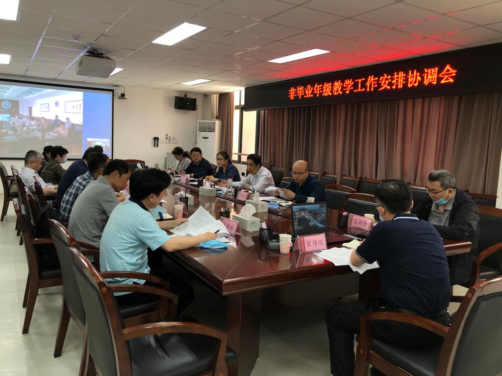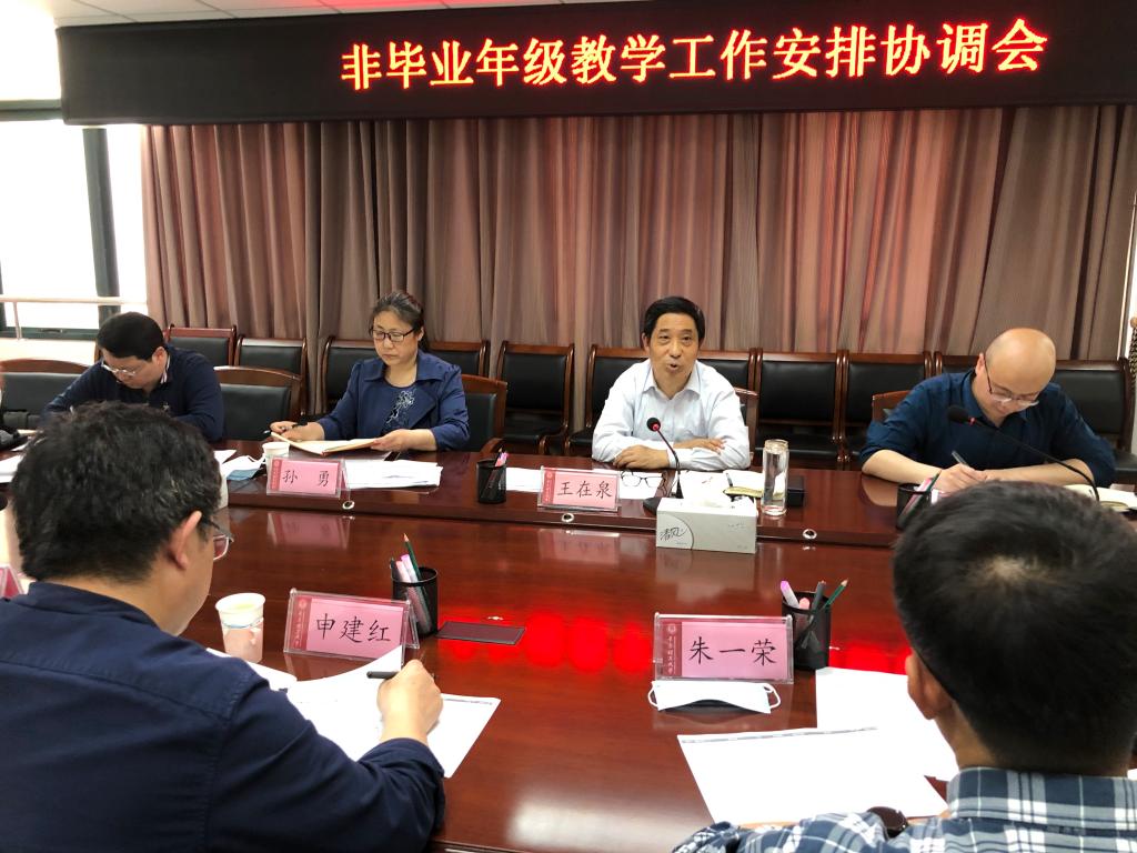 6月4日下午,学校非毕业年级教学工作安排协调会在嘉陵江路校区212会议室召开。副校长王在泉主持会议,各院(部)教学院长(主任)、教务处分管教务工作的负责人参会。