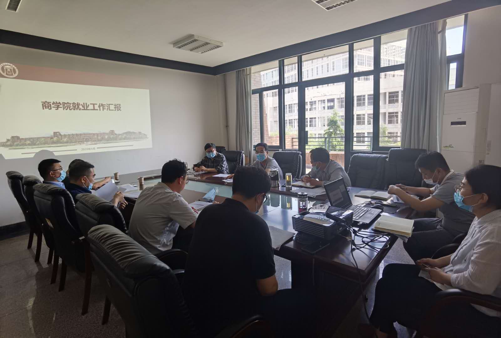 董兰国通过ppt详细汇报了商学院2020届毕业生就业工作进展情况,具体分析了各专业当前就业率和目标就业率对比情况、出国和考研深造情况,总结了学院在毕业生就业方面所做的工作和努力,详细剖析了学生深造率以及下一步重点工作,逐一汇报了未就业毕业生的详细情况,针对就业工作中存在的瓶颈问题提出建议解决办法。