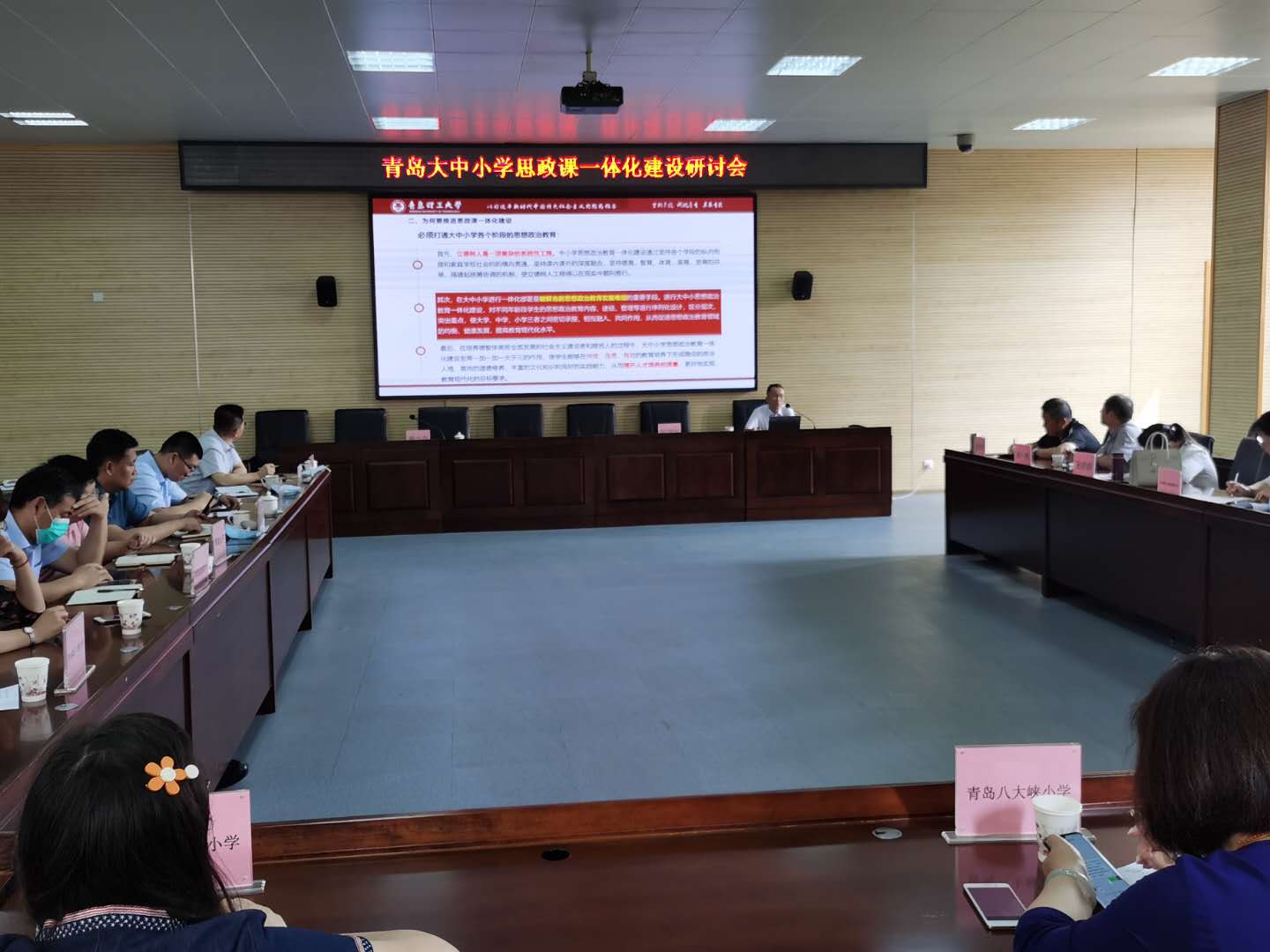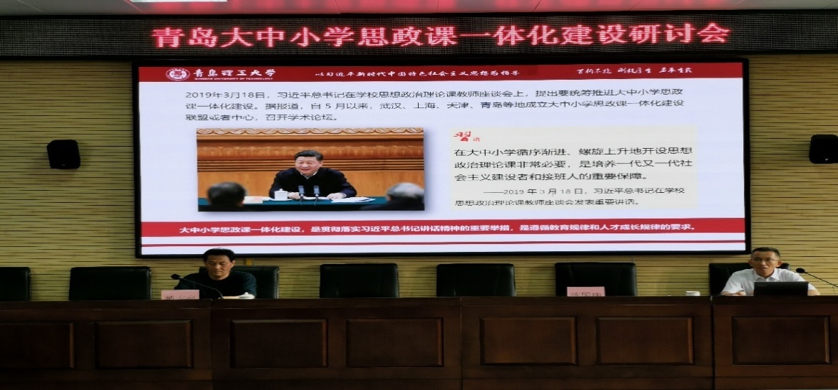 本次研讨会是我校2019年发起成立“青岛新时代大中小学思政课一体化建设联盟”之后的第一次集中研讨会,旨在进一步深入贯彻习近平总书记在学校思想政治理论课教师座谈会上的重要讲话精神,落实立德树人根本任务,加强思想政治理论课教师教学能力建设,深入推进青岛大中小学思政课一体化建设研究,实现思政课建设内涵式发展。