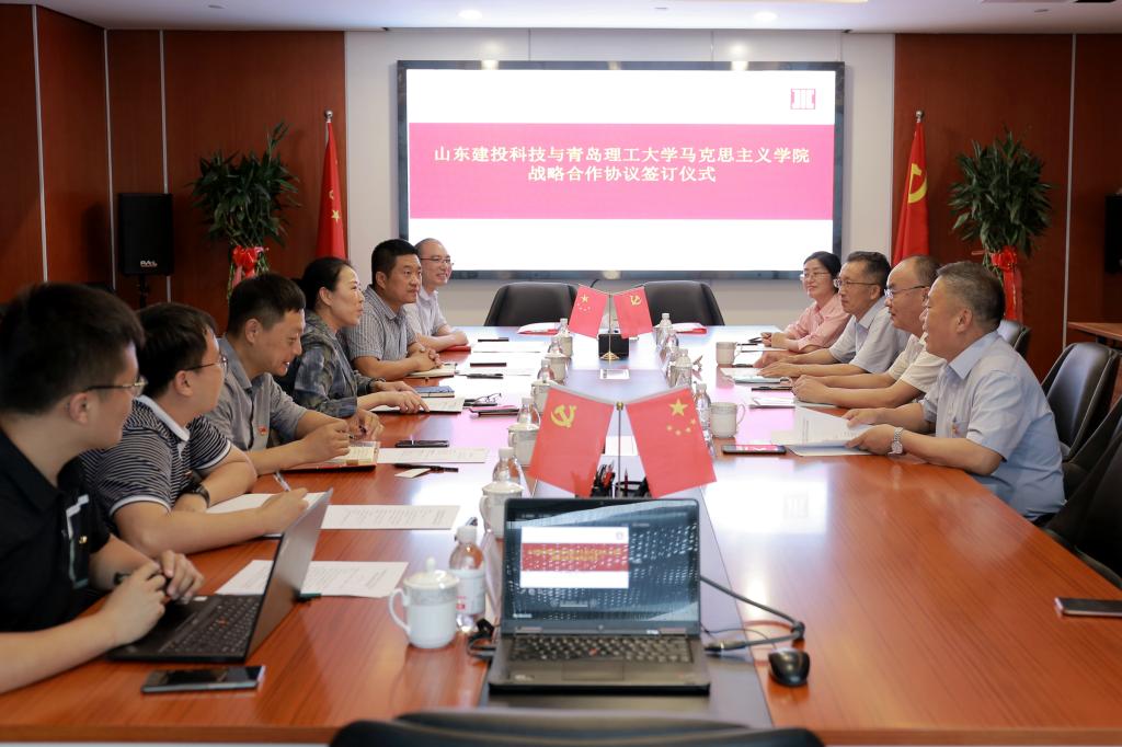 校企携手开展多元化合作,探索构建国有企业高质量党建与高质量发展理论研究共同体。作为加入我校“新时代国企党建协同创新中心”的又一家国企,6月23日下午,山东建投科技与青岛理工大学马克思主义学院党建战略合作签约仪式在山东建投科技举行。