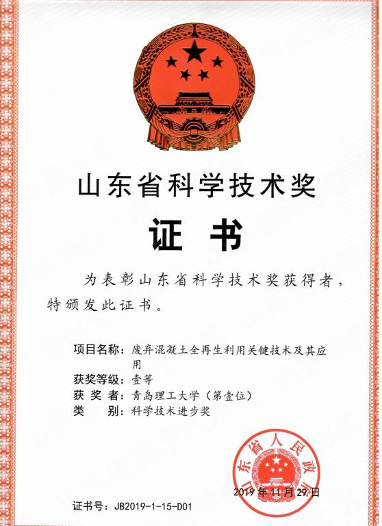 “废弃混凝土全再生利用关键技术及其应用”项目针对废弃混凝土来源复杂、再生骨料均匀性差、再生微粉品质低等难题,开发了废弃混凝土再生粗骨料、细骨料和微粉的全组分再生利用技术,提出了再生混凝土配合比设计方法,揭示了再生混凝土的应变率效应及其机理,建立了再生混凝土绿色施工方法,形成了理论体系与成套技术。解决了再生混凝土材料、结构和施工中的关键科学与技术问题,保障了废弃混凝土资源化与高附加值安全利用,为实现山东省建筑垃圾资源化战略目标以及建筑业可持续发展提供了重要的科技支撑。项目获授权国家发明专利28项、实用新型专利44项、软件著作权10项,施工工法3项,主编/编制标准10部,出版学术专著5本,发表学术论文136篇(SCI收录29篇、EI收录49篇)。项目创新技术不仅在济南、青岛、临沂、潍坊、滨州等地实现了规模化应用,也推广到广西和安徽等地,引领和示范作用明显,推动了“无废城市”的政策出台。近三年完成单位与其他应用单位新增销售额逾8亿元、新增利润逾5500余万元,社会和生态效益显著。(撰稿:唐洪伟,审核:李长河)