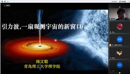 8月16日上午,青岛理工大学2020年“科普云端讲堂”开讲。第一讲主题为“引力波,一扇观测宇宙的新窗口”,我校新引进的高层次人才、理学院的陈文聪教授主讲,教务处副处长、物理学科负责人马鸿洋教授主持。