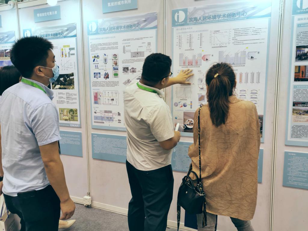 同时,大会同期举办了“新技术与产品博览会”,集中展览国内外绿色建筑、绿色新型建材、绿色能源、健康建筑最新技术成果和应用实践。我校滨海人居环境学术创新中心团队在高伟俊院士、王兴田建筑大师的指导下,现场展出了多项重点在研项目,包括历史建筑保护与更新、零排放住宅展示房、氢能的城市利用、绿色建筑技术研究、智能建造技术研发及示范房建造、国际交流与合作等板块。全面呈现了我校多领域、跨学科的科研实力和学术创新能力,吸引了与会专家和各界人士的驻足交流,纷纷给予关注和支持。