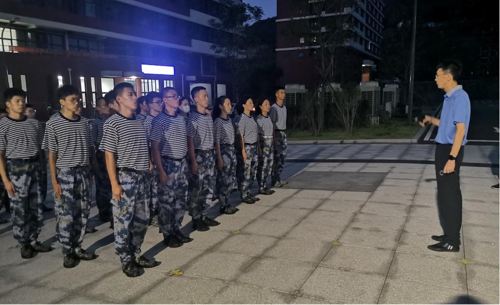 “学生教官训练团”的组建、训练过程不论是对“学生教官”,还是对大一新生、其他在校同学来说,都是一次内容丰富、生动感人的思政课教材。在针对没有参军经历的军事爱好者、青马学员和国旗护卫队员的选拔过程中,团委始终聚焦政治塑造,整合校内外资源,有重点性的选拔政治素质高、典型引领作用强的学生,希望通过优秀学生教官将思想政治工作延伸到新生军事训练中,为新生入校后的思想政治工作扣好“第一粒扣子”。