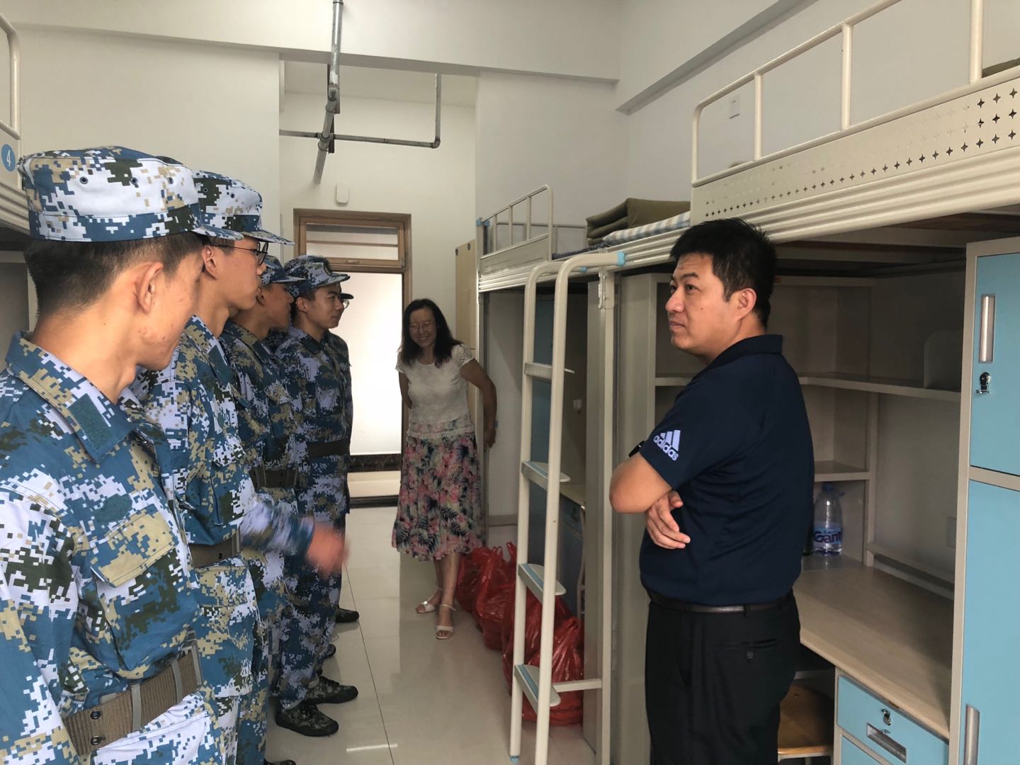 后勤处积极配合做好饮食保障工作,安排专人配餐、专人对接服务,划分了单独就餐区域;不定期更换菜品,确保饮食健康、有营养。同时,还专门为学生教官团改变了假期澡堂开放时间,每天延后一小时,为学生教官团晚上训练提供坚强保障。