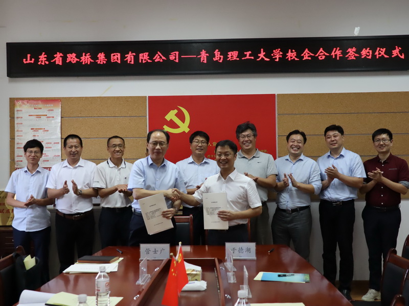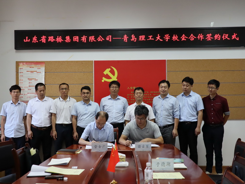 9月3日下午,我校土木工程学院与山东省路桥集团有限公司在一教409会议室举行校企合作签约仪式。校党委常委、副校长于德湖,山东省路桥集团有限公司总经理管士广、副总经理荣兴、中心试验室主任张星、技术中心主任张光桥、青岛建设公司总经理吴庆东、支部书记曹建军,学校科技处副处长赵丙辰、土木工程学院领导班子参加仪式。仪式由土木工程学院院长苗吉军主持。