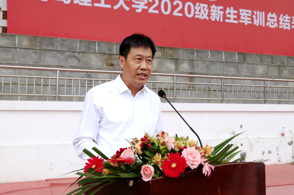沈文青、王伟、李国涛分别讲话,向承担此次军训任务的学生教官、为军训辛勤工作的老师们表示诚挚的感谢,向取得军训优异成绩的同学们表示热烈的祝贺及亲切的慰问。他们在讲话中肯定了全体学生教官高度的责任感和严谨的工作作风,肯定了2020级新生在大学第一课中的出色表现,并提出了殷切希望,要始终牢记军训的宗旨,养成良好的品格、作风、纪律和精神,并延续到今后的学习、生活中去。要弘扬“百折不挠、刚毅厚重、勇承重载”的理工精神,树立远大理想,担当时代责任,勇于砥砺奋斗,练就过硬本领,以坚如磐石的信心、只争朝夕的劲头、坚韧不拔的毅力,把爱国奋斗精神转化为实际行动,与祖国和时代一起成长,共同享有人生出彩的机会,共同享有梦想成真的机会,为实现中华民族伟大复兴的中国梦贡献青春力量。